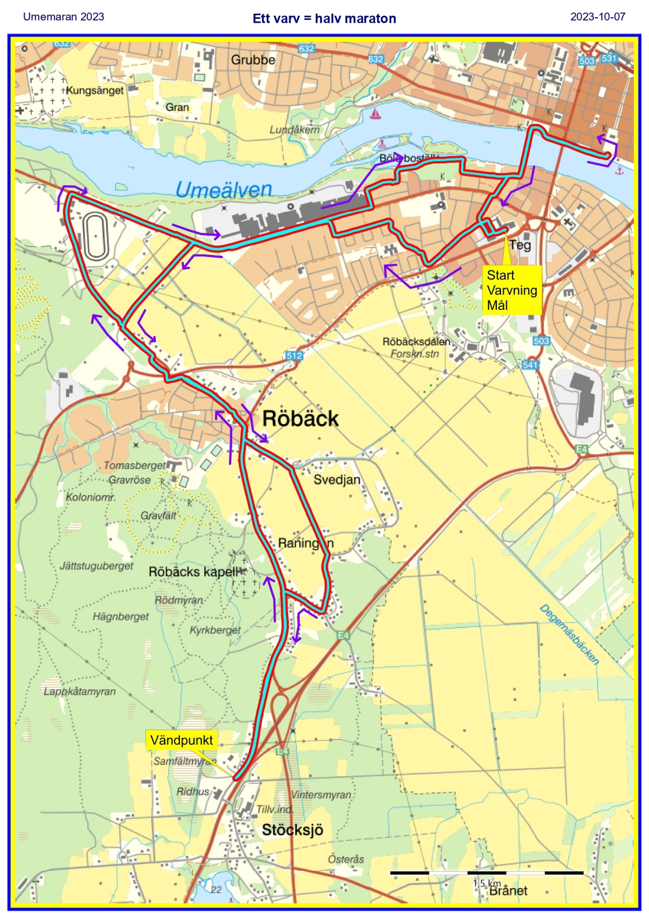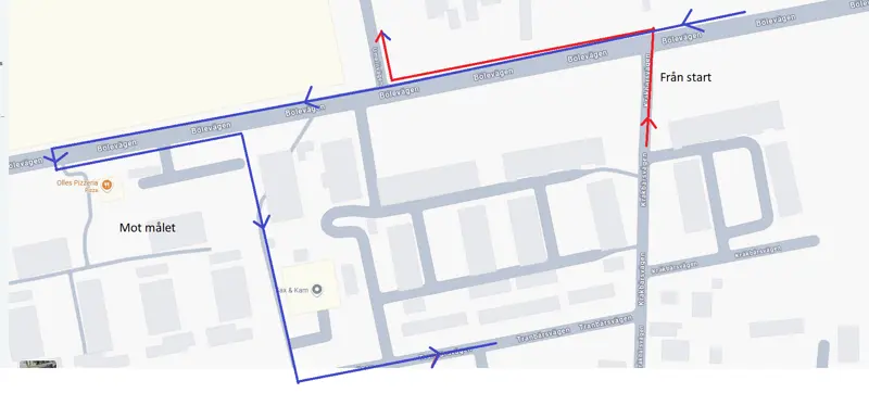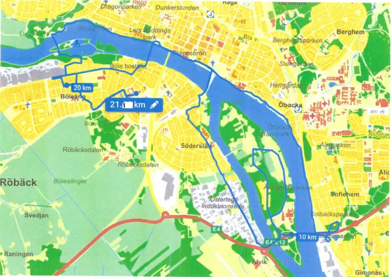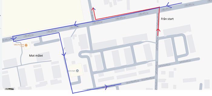 Röd = inledning av varvet efter ca 2 km. Blå= mot målet efter ca 19 km.